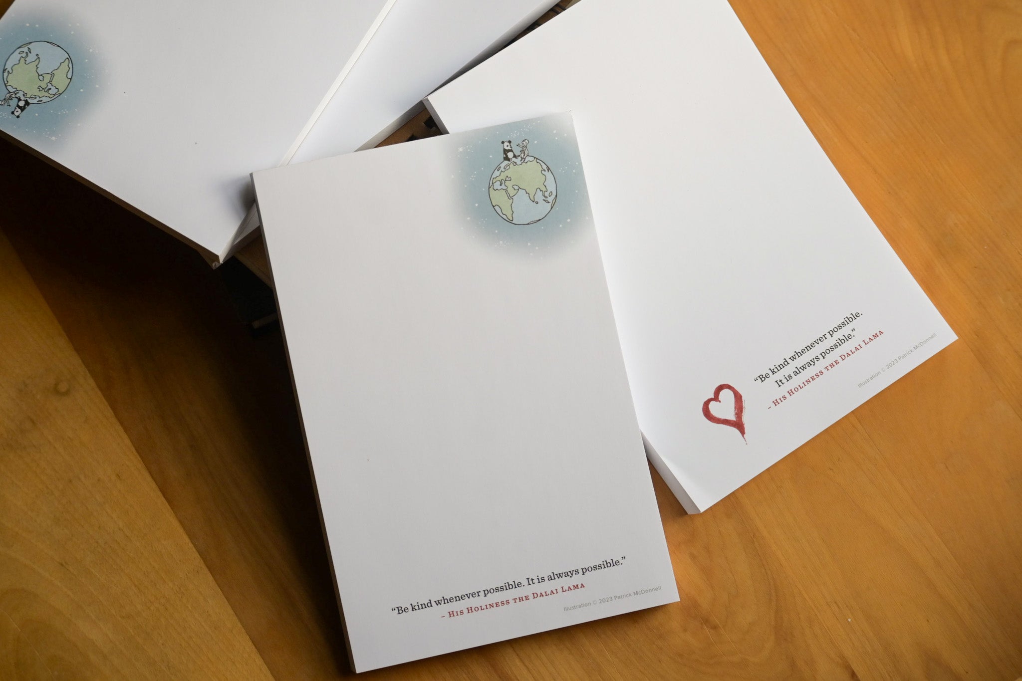 This notepad is part of a new exclusive collection that shares some of our favorite illustrations and quotes from Heart to Heart, a remarkable collaboration between His Holiness the 14th Dalai Lama and renowned illustrator Patrick McDonnell. Featured on this notepad is a paint stroke heart illustration from Heart to Heart, accompanied by the quote, "Be kind whenever possible. It is always possible."